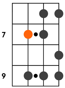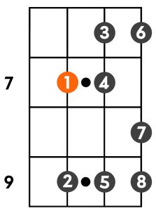 However, not just any E will do (looking at you open string E). We’ll use the E on the 7th fret of the A string: