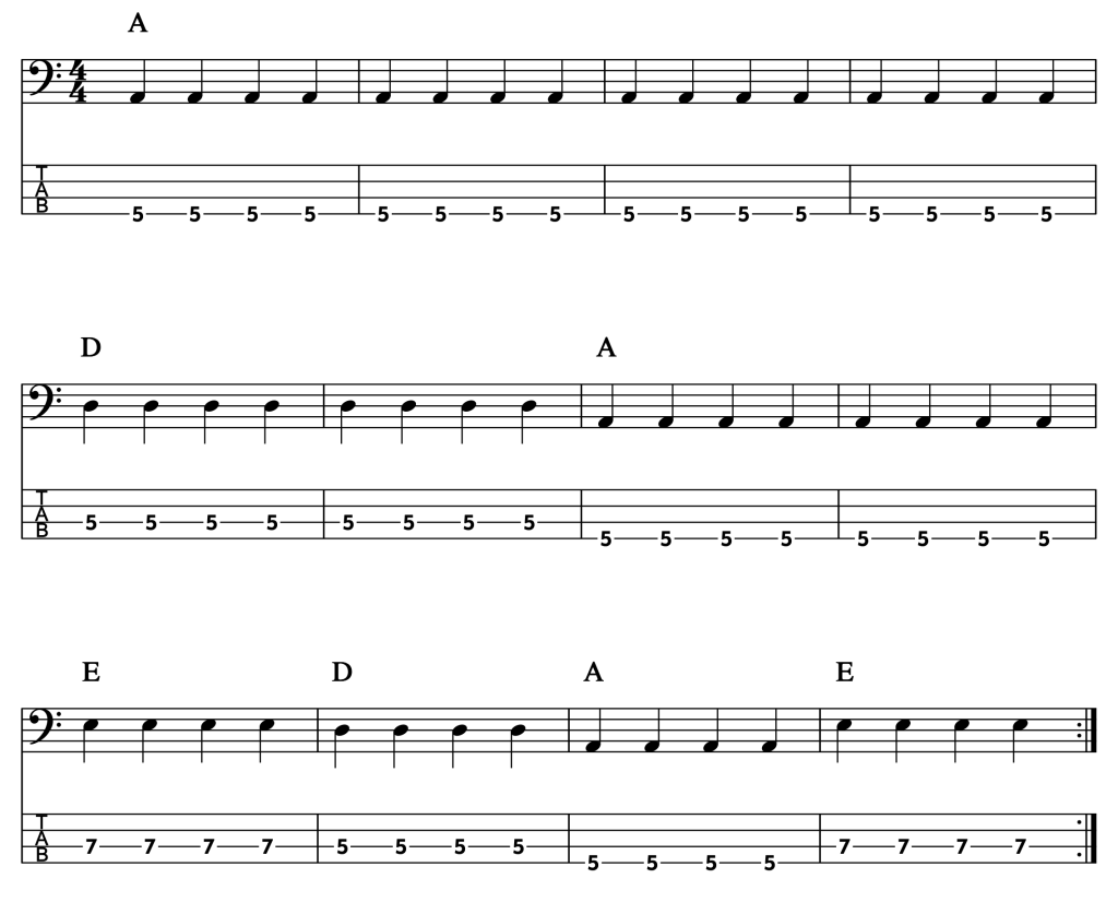 So, rather than jumping in with deep and weighty music theory explanations, we’ll start with the first practical piece of info you’ll need to get you playing the blues on your bass.