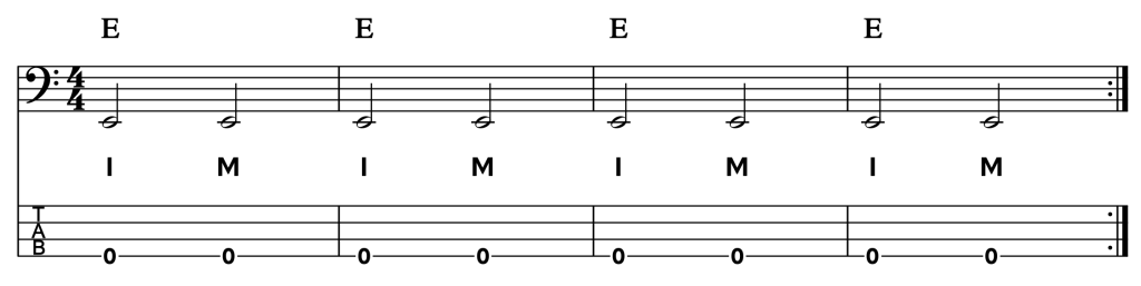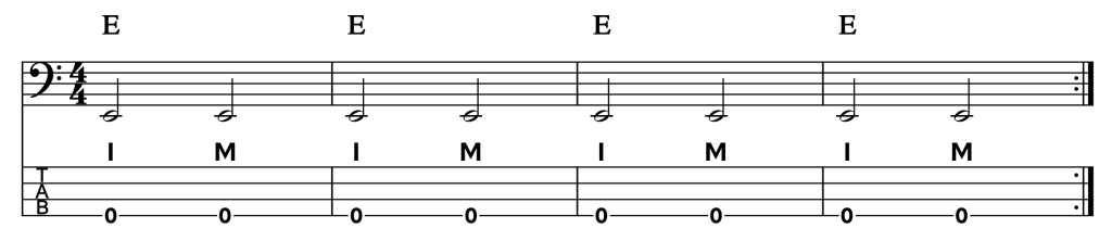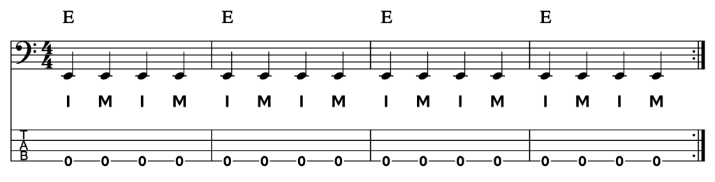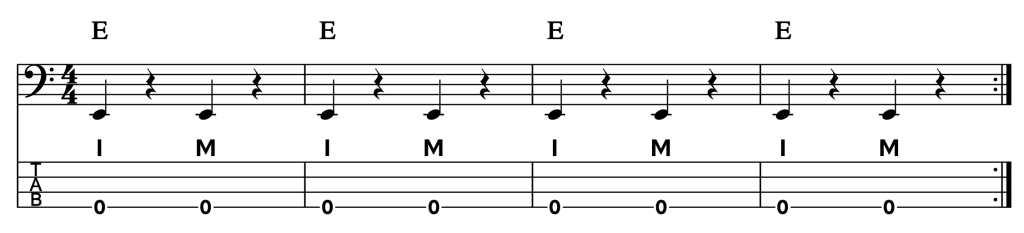 You’re plugged in, knobs are set, you found a comfortable position sitting or standing, you’re tuned up, you’re plucking with index and middle, pulling across, thumb anchored on the pickup, your fretting hand is nice and relaxed, fretting with index and pinky…