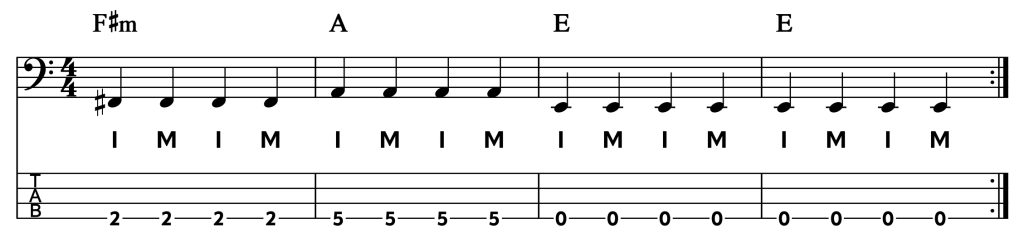 We’re simplifying this bass line a bit, but it’s still legit enough to play in a garage with your friends.